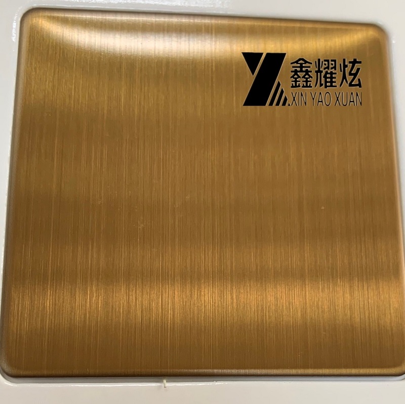 | 產品 Product: | 發紋黃銅金不銹鋼亮光面 Hairline Brass Gold Stainless Steel Panel,decorative 304 wall panel gold color coated stainless steel sheet |